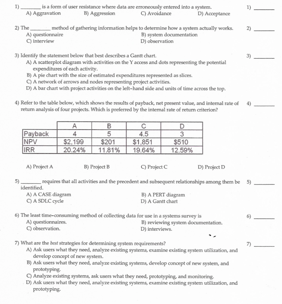 Solved: 1) 1) Is A Form Of User Resistance Where Data Are ... | Chegg.com